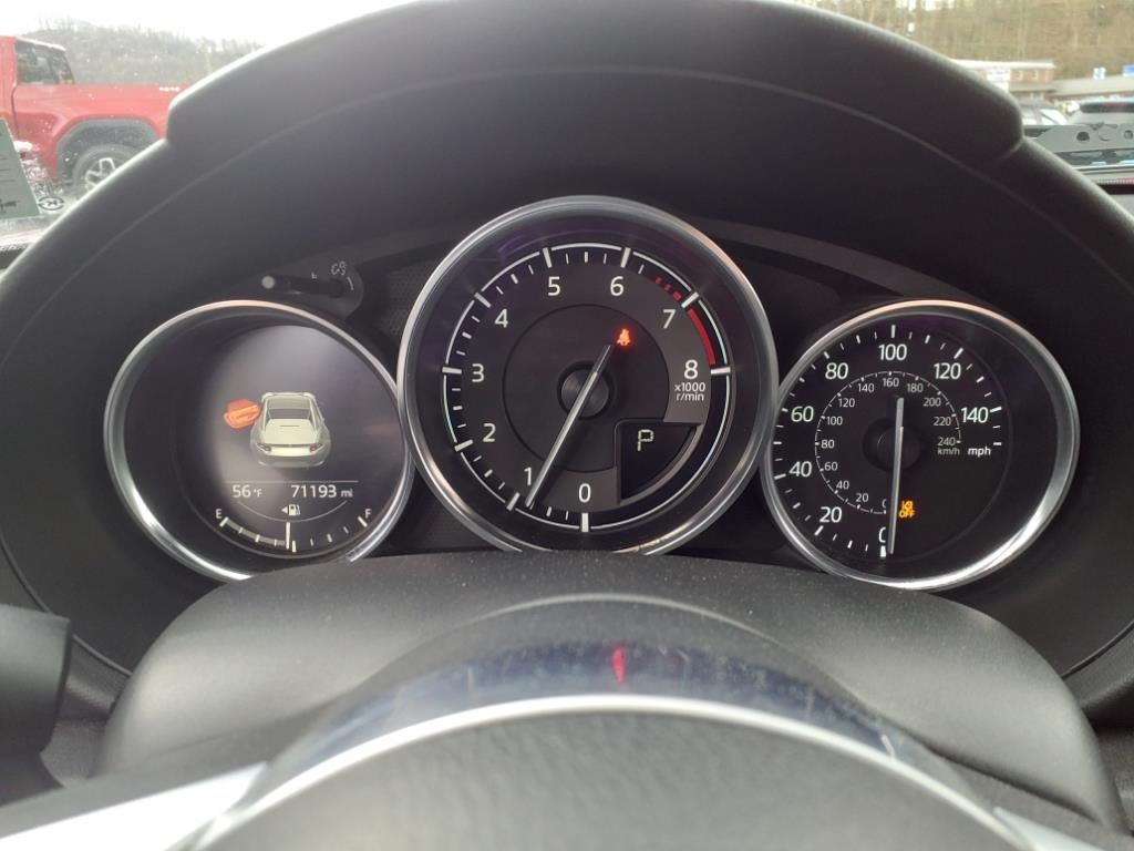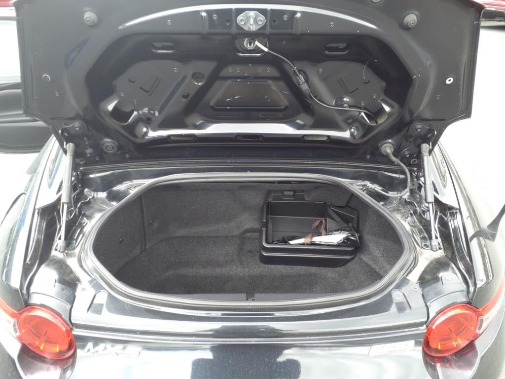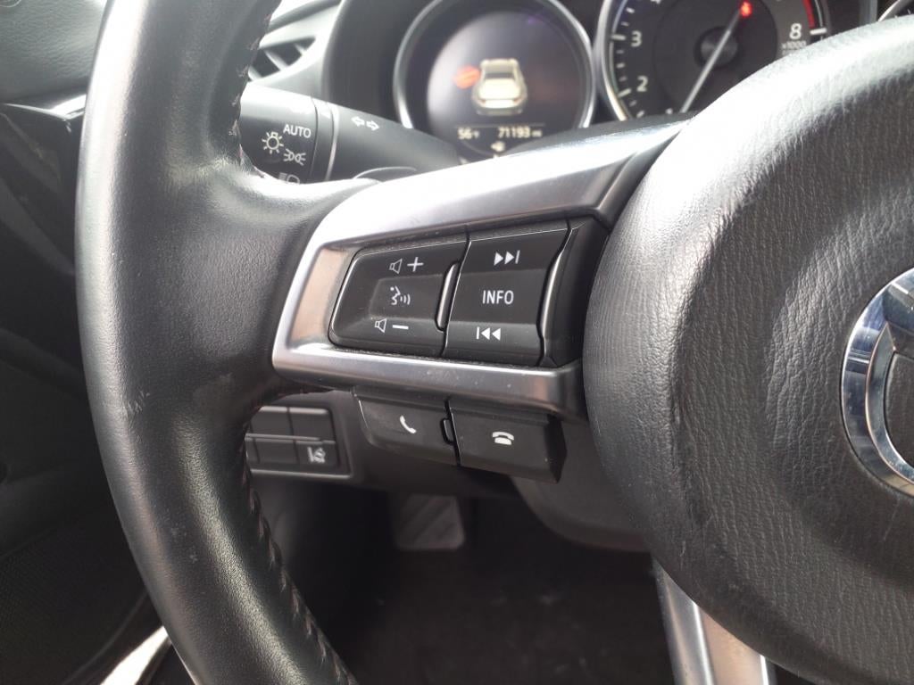 4-Wheel Disc Brakes, 9 Speakers, ABS brakes, Air Conditioning, Alloy wheels, AM/FM radio: SiriusXM, Auto High-beam Headlights, Auto-dimming door mirrors, Auto-dimming Rear-View mirror, Automatic temperature control, BOSE Audio System, Brake assist, Bumpers: body-color, CD player, Convertible HardTop, Convertible roof lining, Convertible roof wind blocker, Delay-off headlights, Driver vanity mirror, Dual front impact airbags, Dual front side impact airbags, Electronic Stability Control, Emergency communication system: MAZDA CONNECT, Four wheel independent suspension, Front anti-roll bar, Front Bucket Seats, Front Center Armrest, Fully automatic headlights, Garage door transmitter: HomeLink, Glass rear window, Heated door mirrors, Heated front seats, Illuminated entry, Leather Shift Knob, Leather Upholstery, Low tire pressure warning, MAZDA CONNECT Infotainment System, Navigation System, Occupant sensing airbag, Outside temperature display, Panic alarm, Passenger vanity mirror, Power convertible roof, Power door mirrors, Power steering, Power windows, Radio data system, Radio: AM/FM w/Navigation, Rain sensing wipers, Rear anti-roll bar, Rear window defroster, Reclining Heated Front Bucket Seats, Remote keyless entry, Security system, Speed control, Speed-sensing steering, Sport steering wheel, Steering wheel mounted audio controls, Tachometer, Tilt steering wheel, Traction control, Trip computer, Variably intermittent wipers, and Wheels: 17 x 7 Dark Silver Aluminum Alloy.