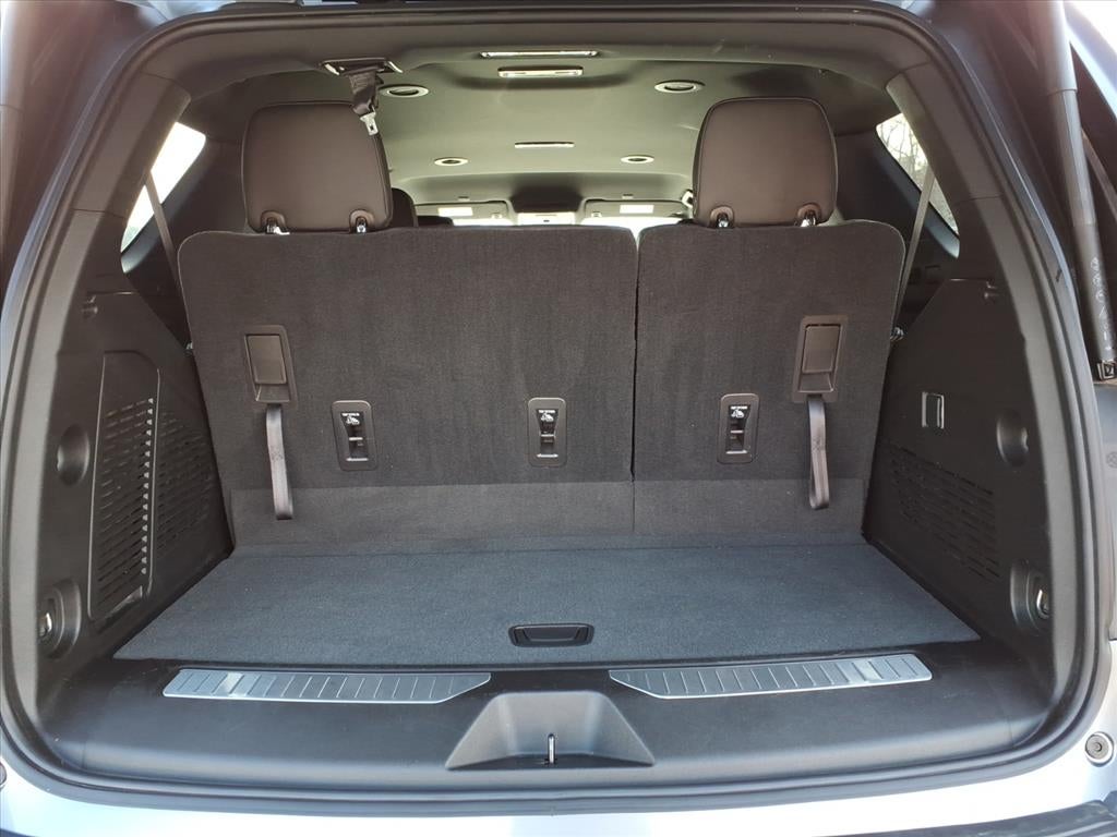 License Plate Front Mounting Package, Preferred Equipment Group 1SP (1st & 2nd Row Color-Keyed Carpeted Floor Mats, 2 USB Data Ports, Auto-Dimming Inside Rear-View Mirror, Bright Front & Rear Door Sill Plates, Color-Keyed Carpeting Floor Covering, Driver & Front Outboard Passenger Airbags, Floor Console w/Storage Area, Hands-Free Rear Power Programmable Liftgate, HD Radio, Infotainment Display, Leather-Wrapped Steering Wheel, LED Daytime Running Lamps, Memory Settings for Driver, Remote Start, SiriusXM Radio w/360L, and Universal Home Remote), 4WD, Jet Black/Victory Red Leather, 10-Way Power Driver & Passenger Seat Adjusters, 3.23 Rear Axle Ratio, 3rd row seats: split-bench, 4-Wheel Disc Brakes, 9 Speakers, ABS brakes, Air Conditioning, Alloy wheels, AM/FM radio: SiriusXM with 360L, Apple CarPlay/Android Auto, Auto High-beam Headlights, Auto-dimming Rear-View mirror, Automatic temperature control, Bose 9-Speaker Stereo Audio System Feature, Brake assist, Bumpers: body-color, Compass, Delay-off headlights, Driver door bin, Driver vanity mirror, Dual front impact airbags, Dual front side impact airbags, Electronic Stability Control, Emergency communication system: OnStar and Chevrolet connected services capable, Four wheel independent suspension, Front anti-roll bar, Front Bucket Seats, Front Center Armrest, Front dual zone A/C, Front High-Back Reclining Bucket Seats, Front reading lights, Fully automatic headlights, Garage door transmitter, Heated door mirrors, Heated Driver & Front Passenger Seats, Heated front seats, Illuminated entry, Leather steering wheel, Low tire pressure warning, Memory seat, Not Equipped w/Automatic Stop/Start, Not Equipped w/Steering Column Lock, Occupant sensing airbag, Outside temperature display, Overhead airbag, Overhead console, Panic alarm, Passenger door bin, Passenger vanity mirror, Perforated Leather Se